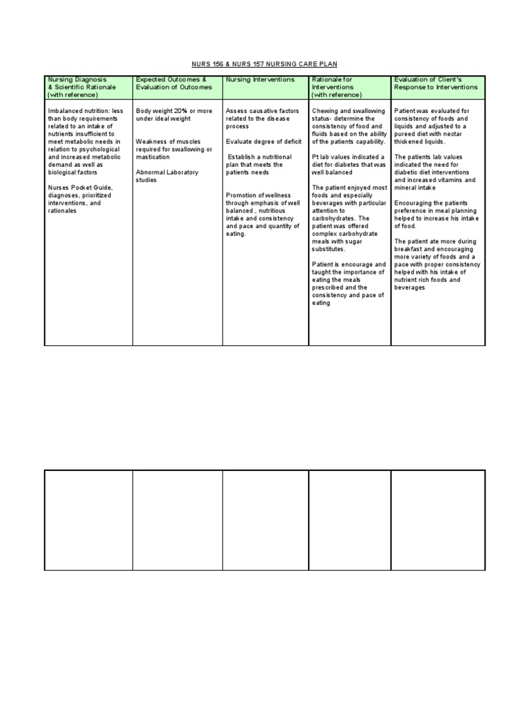 Nursing Care Plan And Diagnosis For Imbalanced Nutrition More