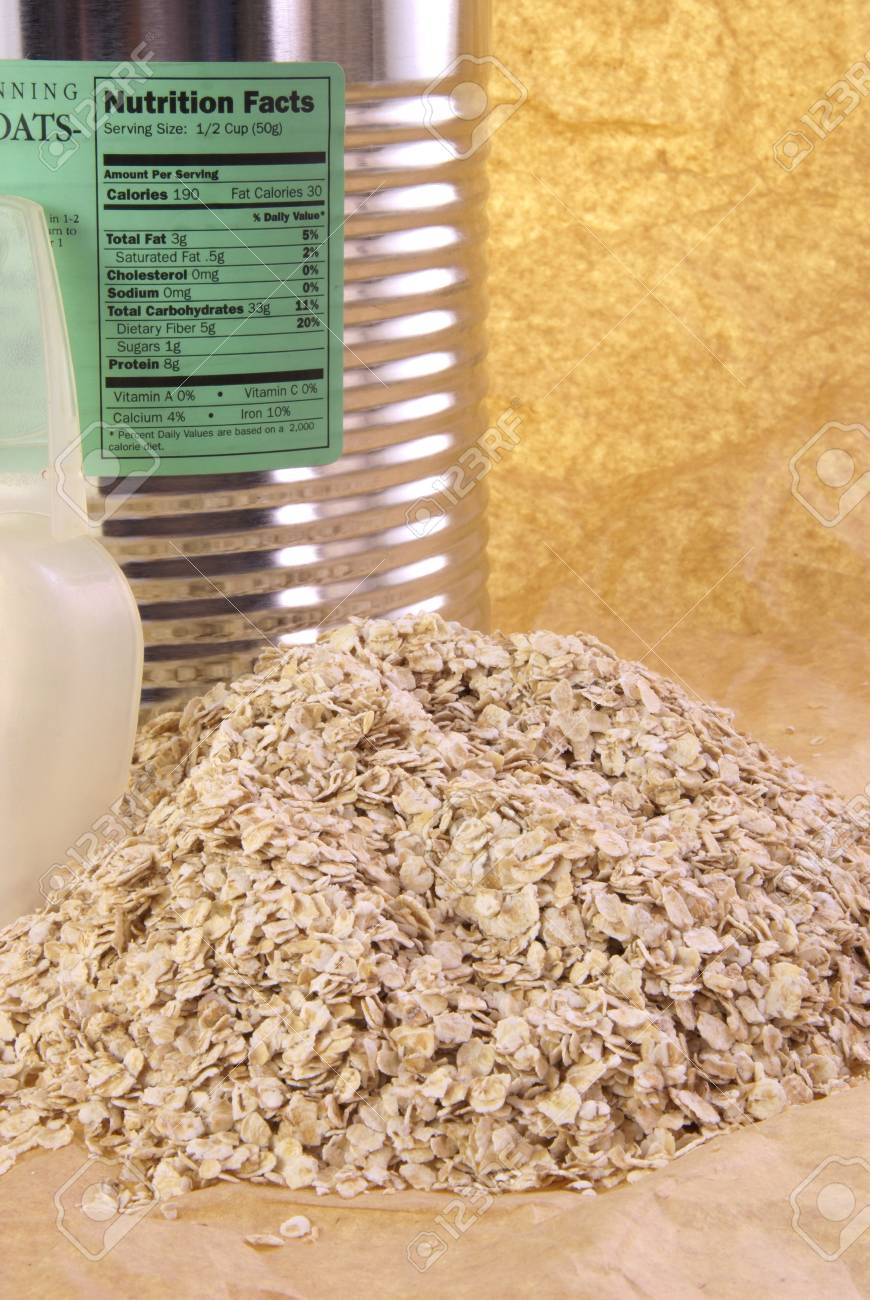 Pile Of Raw Rolled Oats With Nutrition Label Stock Photo Picture