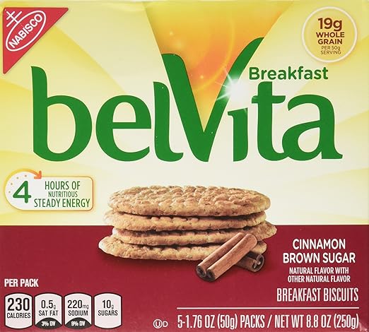 4 biscuits contain 230 calories 32g net carbs 10g sugar and 8g fat. Belvita cinnamon brown sugar breakfast biscuits. Belvita cinnamon brown sugar breakfast biscuits.