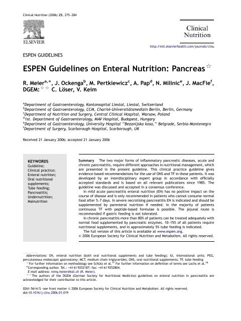 Espen Guidelines On Enteral Nutrition Pancreas Center For