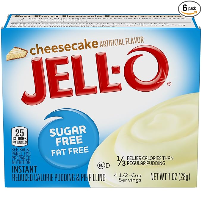 Jell o banana cream instant pudding 34 oz box. Jell o instant sugar free cheesecake pudding pie filling 1 oz box. Jell o sugar free cheesecake instant pudding mix 1 ounce box pack of 6.