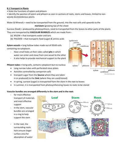 Igcse Biology Plant Nutrition And Transport Full Notes A Student