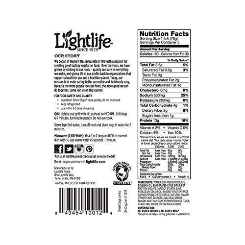 Lightlife Jumbo Smart Dogs Meatless Veggie Hot Dogs 13 5 Oz 2