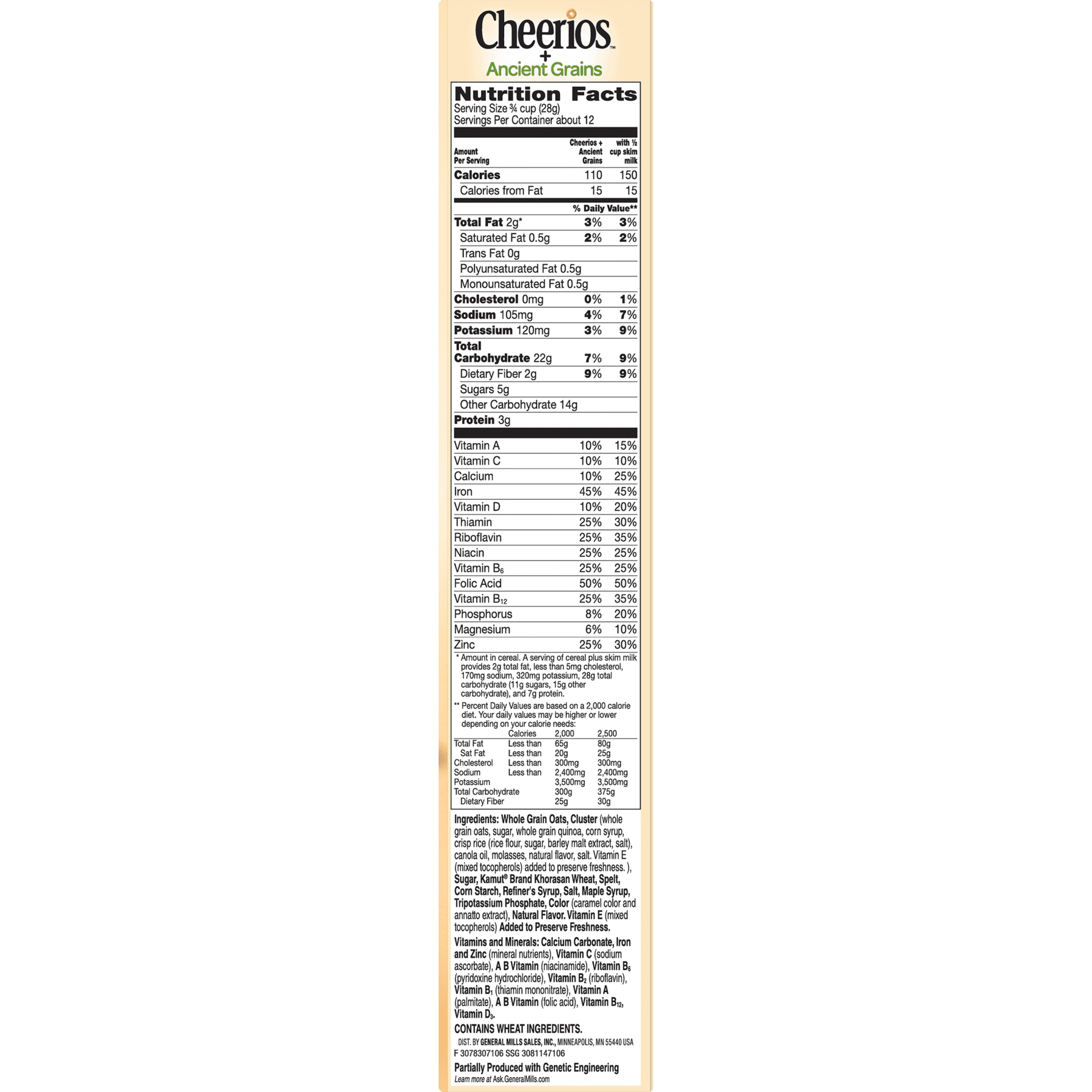 Cheerios ancient grains nutrition facts. Cheerios for the win. Get full nutrition facts for other general mills products and all your other favorite brands. Our 5 whole grains are grown milled and toasted before being lightly sweetened and enhanced with extra vitamins minerals giving you more of the goodness youre looking for in.