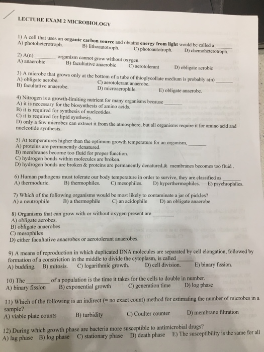 Solved Lecture Exam 2 Microbiology 1 A Cell That Uses An