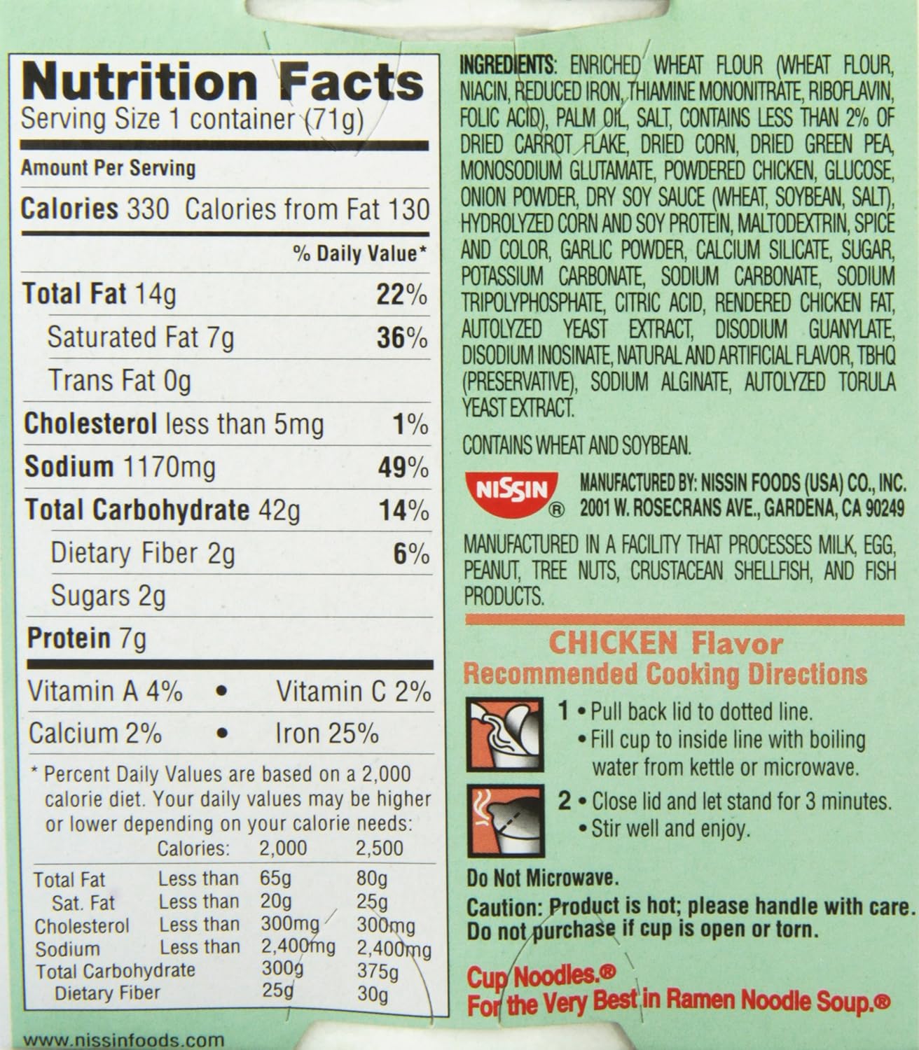 Calories In Cup Noodles Chicken From Nissin