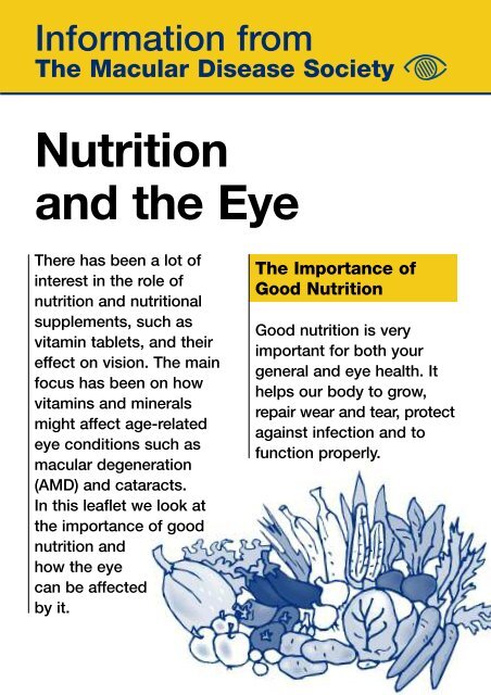 Macular degeneration and nutrition information macular degeneration nutrition information eye nutrition. Several studies have indicated a strong link between the development of macular degeneration nutrition. Current recommendations emphasize a few key nutrients once you have the disease.