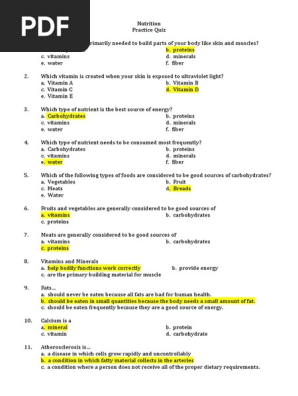 Practice Quiz Nutrition Answer Key Pakistan Peoples Party